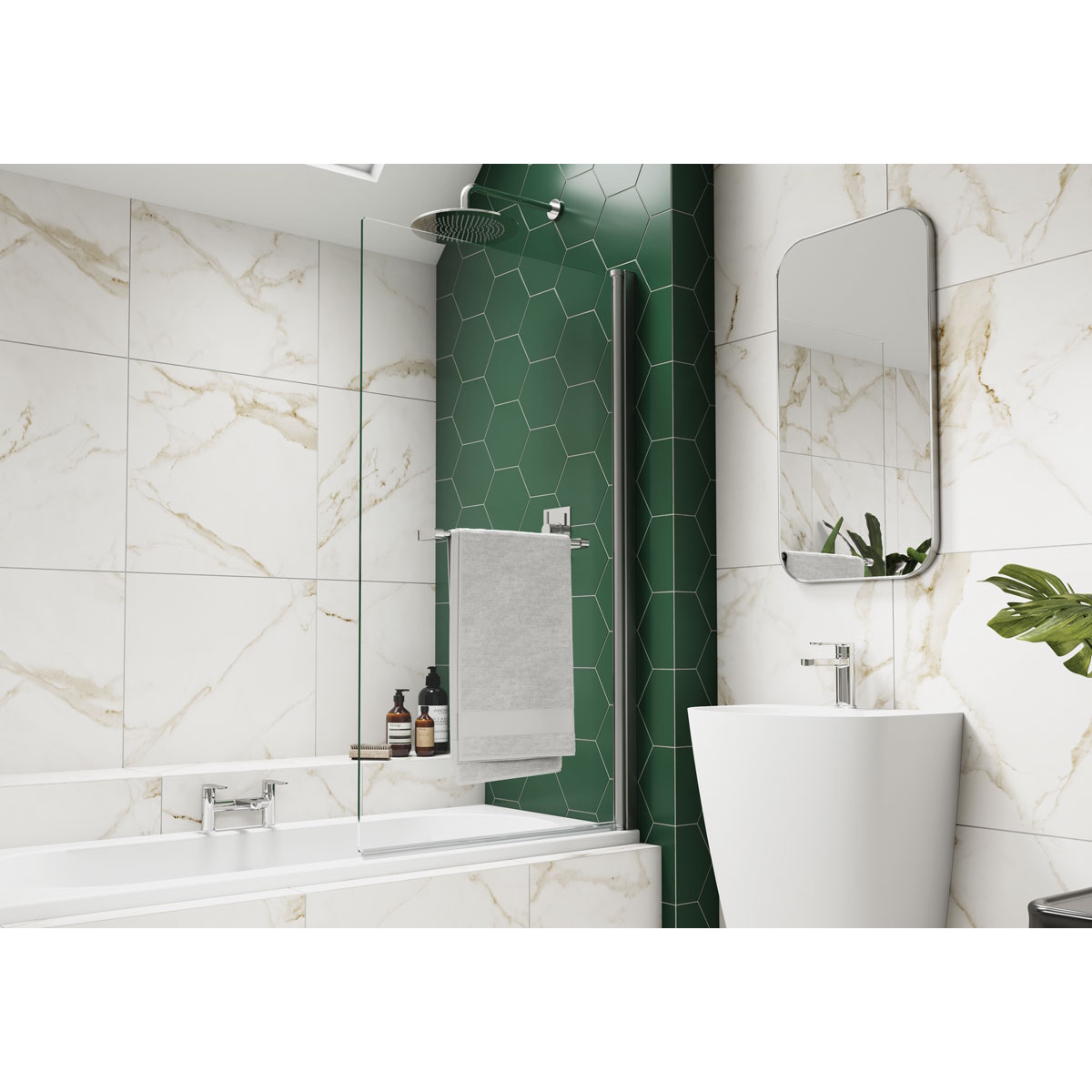 - For added comfort and convenience, single panel bath screens are available with an integrated rail so you can keep your towel within easy reach.