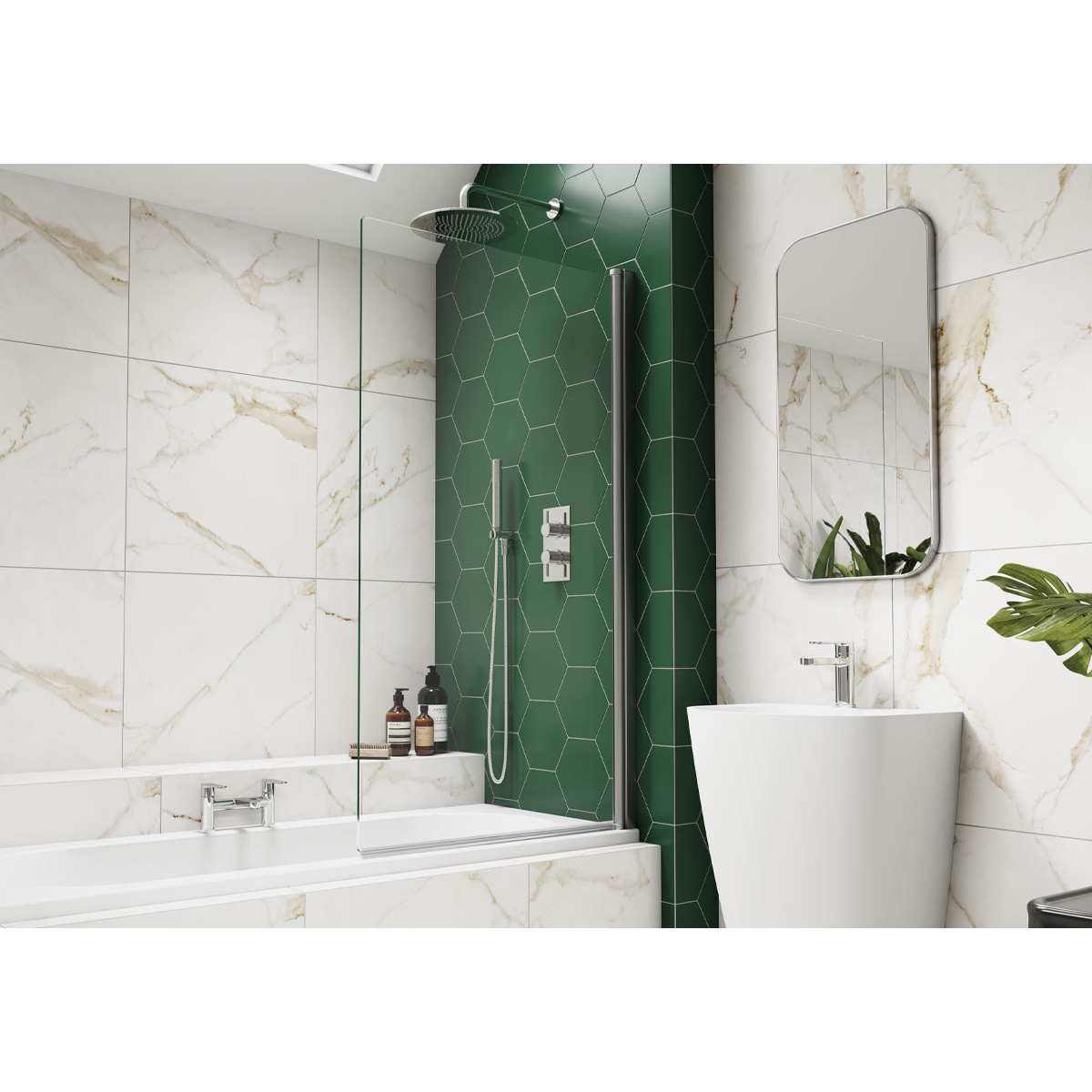 - Kudos Inspire single panel bathscreens are larger than average measuring 1500mm high and 850mm wide to provide a more generous showering area.