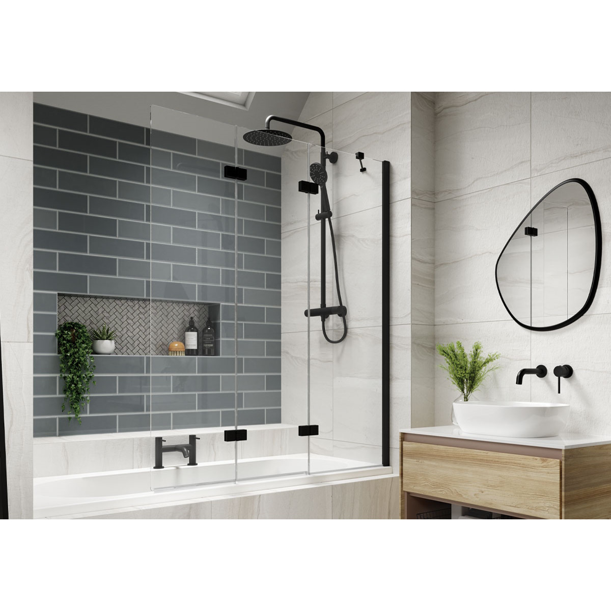 - The screen extends to 1250mm, yet folds to just 500mm when not in use, providing the features of a relaxing bath as well as the benefit of an oversized showering area.