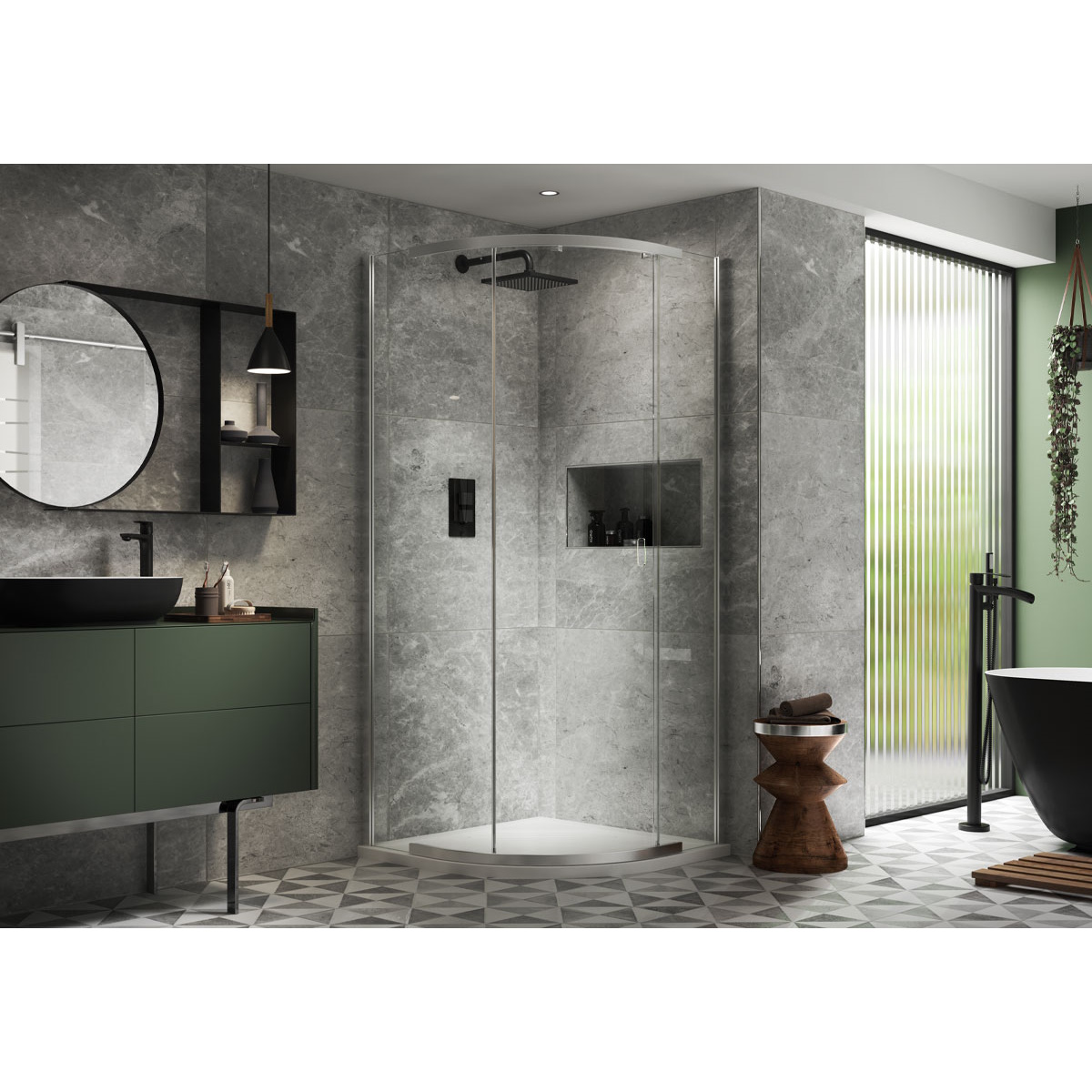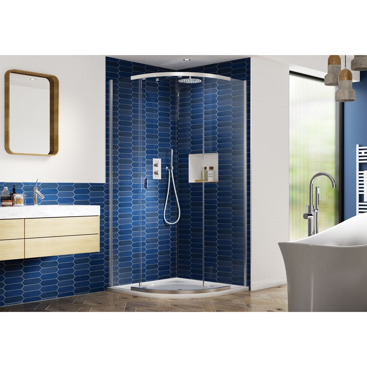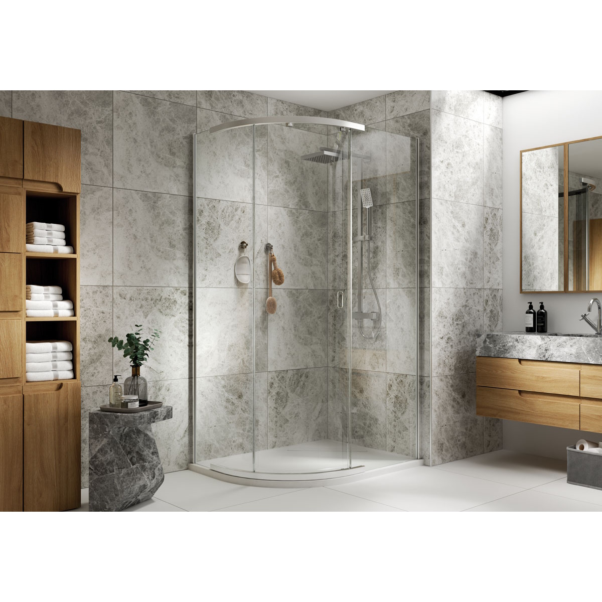 - The semi frameless Pinnacle8 quadrant and offset quadrant features uninterrupted glass from wall to wall with its crystal clear seals and unique finger pull.